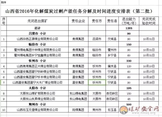 第二批关闭煤矿涉及四大煤企,分别为焦煤集团4座煤矿,潞安集团3座煤矿,东山煤电集团2座煤矿,阳煤集团1座煤矿。截至目前,山西2016关闭退出煤矿增至25座,涉及退出产能2325万吨。