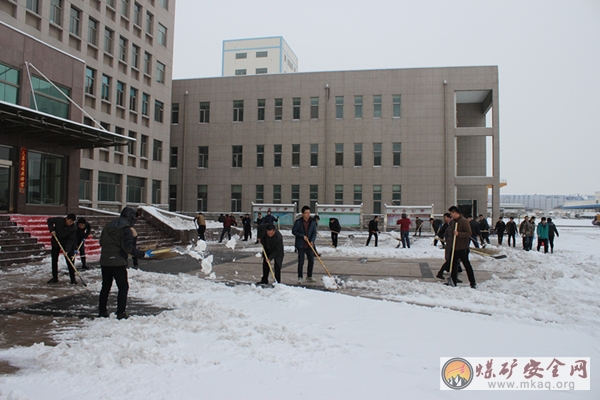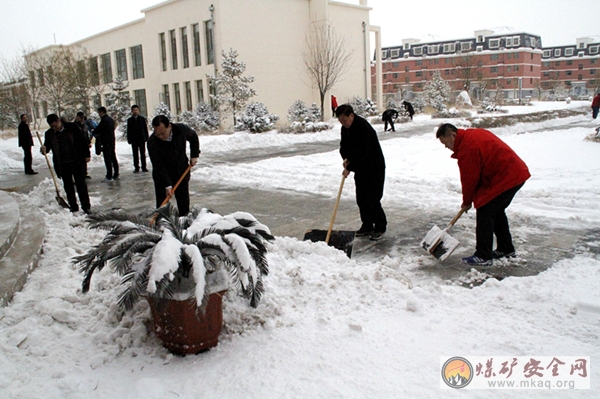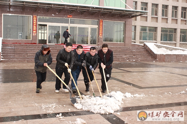在公司本部及两矿的广场上,领导干部带头干,职工群众抢着干,大家不畏严寒,挥舞着笤帚和铁锹,你铲我扫,热火朝天的场面延绵在整个广场上。经过2个多小时的共同努力,广场内外的积雪被清扫干净,为过往职工提供了便利。