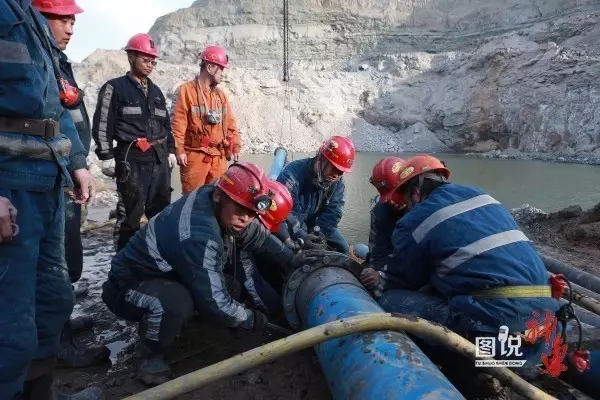 在事故现场救援指挥部的统筹安排下,救援工作采取的主要办法是“堵”和“抽”,一是从地面露天采坑封堵涌水通道并进行排水;二是从主斜井和副斜井安设排水泵进行排水;三是从地表施工钻井至井底安装潜水泵进行排水。四是确定被困人员位置,尽快进行供风。