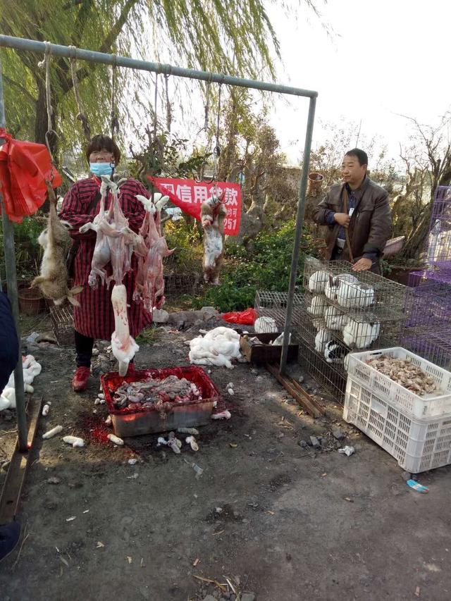 这位农村大姐在大集上活杀家养野兔,货真价实,引起人们的注意。她说,她家里饲养野兔500余只,每天都来大集上现杀现卖,生意时好时不好。大姐说,家养野兔杀好洗好,到家就吃,35元钱一个,不贵吧。