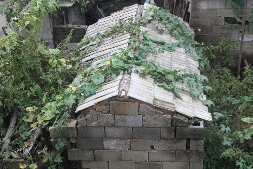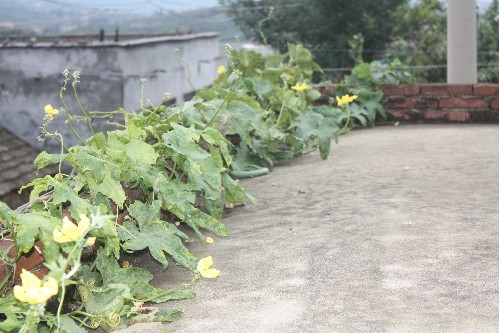 俗话说:“房前屋后,种瓜种豆”。这句话说得真不错。无论是在城市还是农村,我们都喜欢在自己的庭前院后种些小植物,或者是花,或者是菜。母亲在墙边播了一些“种子”,没过多长时间,它就开始长出藤蔓来,再过些日子帮它插上点篱笆,如今竟然长到了房顶。不过也好,这样我们走上房顶就可以亲手摘下它们啦。我家的房顶早已经绿色盈盈,可以说是丝瓜满棚了。每天早晨起床后站在院子前,呼吸着新鲜的空气,都会感觉到丰收的气味。这些“丝瓜”在生长过程中总会遇到阻碍,我有事没事就会将种有丝瓜附近的所有障碍物体都清除干净, 使丝瓜可以在周围内无可爬蔓物体缠绕它们。然后这样丝瓜就长得比较快,加上水分、养料和光照,就能能正常生长。