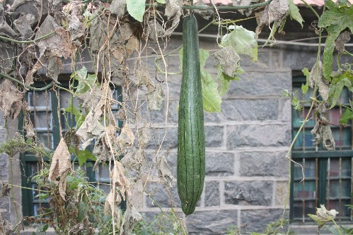 这么长的丝瓜,也算比较少见了,这么多的丝瓜自然吃不完,那些吃不了的丝瓜,在藤蔓上越长越大,我们摘下晒干后,就除去瓜皮和瓜子可以像布一样来洗碗,擦桌子,这样弄得反而更干净。可以说丝瓜从夏天到秋天,从长出到长大,始终都在我们的庭院旁,它不用施肥和打农药,是真正的绿色食品。这就是我们农桌上的普通家常菜,一颗种子,一片天地。(程声响)