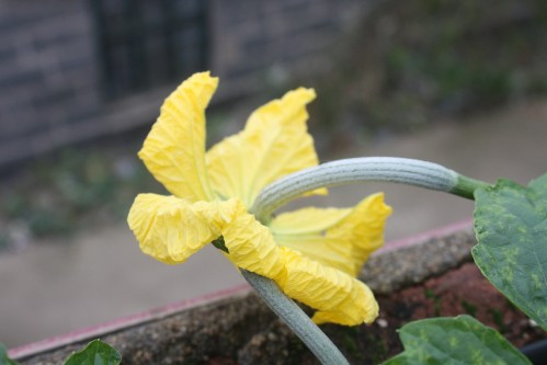 “丝瓜”开始长出的时候,我也认为这是它最好看的阶段,因为它的头上有一朵小黄花。丝瓜特别小,如果你不仔细看的话,你会觉得这就是一朵花,一堆黄花在阳光下就会显得格外灿烂。我那时候不懂事,特别喜欢把花摘下来玩,这时候母亲就会叨唠我啦!