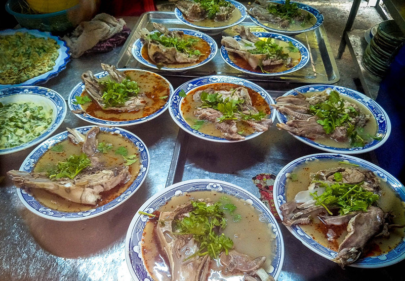 几天前,小编和好友一行三人驱车100余里,慕名来到安徽淮北毛庄矿,这里有一位农民大哥烹饪的美食烧羊头生意卖的火爆,每日来吃烧羊头的客人满席,很多人都是专程来吃,烧羊头25元一大碗,汤鲜味美,客人品尝后赞不绝口。