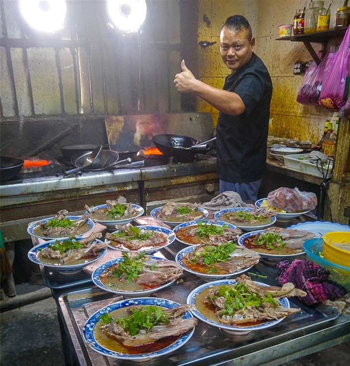 这位开羊头馆的农民大哥叫王猛,今年40多岁,他说他家的羊头馆开的有些历史了,最早他的爷爷开羊头馆,后来传授给他父亲,如今他年迈的父亲70多岁了,又把烹饪羊头的秘方传授给王大哥了。王大哥说:“他烹饪的烧羊头都是本地山羊,这种本地山羊头烹饪出来的美食,汤鲜味美,肉质不膻不腻,香飘数里。