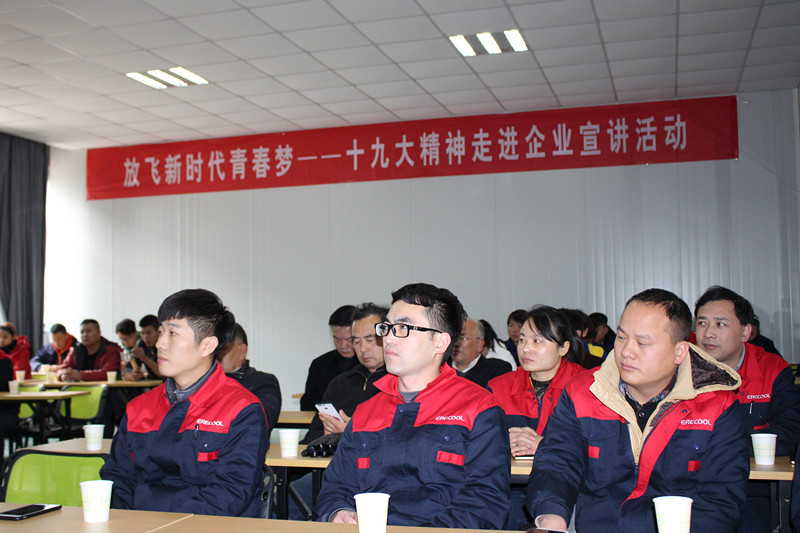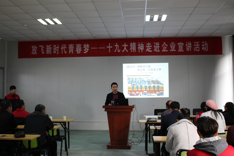 11月22日,安徽省濉溪县“放飞新时代青春梦----十九大精神走进企业宣讲活动”来到安徽艾瑞库车业有限公司进行宣讲。在安徽艾瑞库车业有限公司的大会议室里,坐满了来自濉溪县经济开发区和濉芜现代产业园的30余家企业的代表60余人参加了会议。