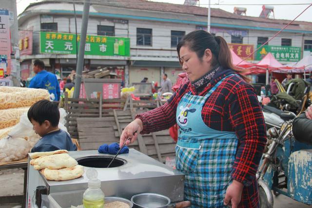 打烧饼的农村大姐叫徐玉梅,家住徐搂集不远,今年30岁,早年在外打工,吃过苦,受过罪。去年,他跟表姐学会了打烧饼的手艺,在徐搂集街头找一块小地方,自己加工一个带四个轮子的能移动的烧饼炉子,开始了她的创业梦。时令已经入冬,徐玉梅打烧饼站在冷风里就是一天,很是辛苦。徐玉梅说,为了家人团圆,为了父母和孩子能过上好日子,自己苦点、累点,值。