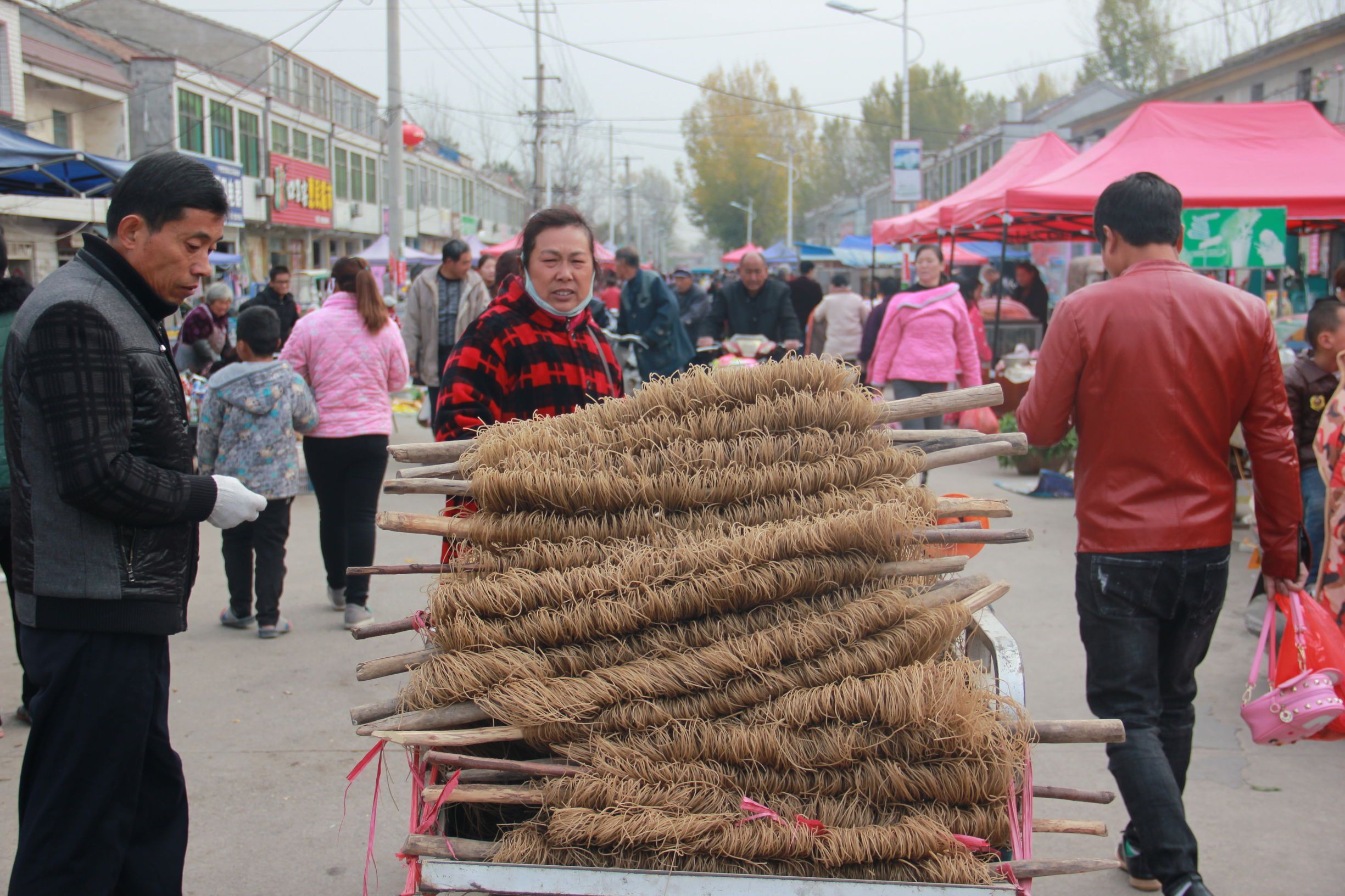 本网讯:(程声响)深秋时节,一位身穿红色格子褂的女人骑电动三轮车,拉一车纯红薯粉丝来到淮北农村大集上销售,由于她的粉丝格外晃眼,立刻吸引了人们的目光,人们围上前来观看、询问、购买。