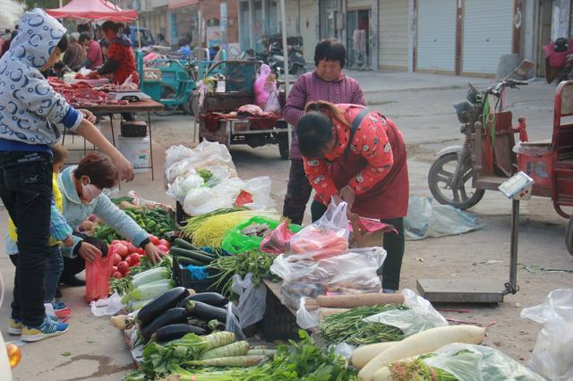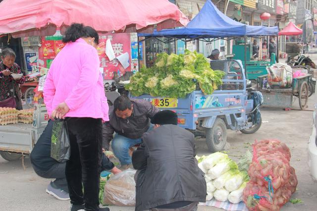 安徽淮北,农村大集上,青菜在热卖中。
