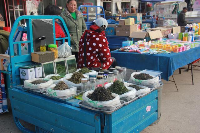 安徽淮北,农村大集上,摆摊出售的茶叶,各种口味都有。茶叶比超市里便宜,你来买吗?