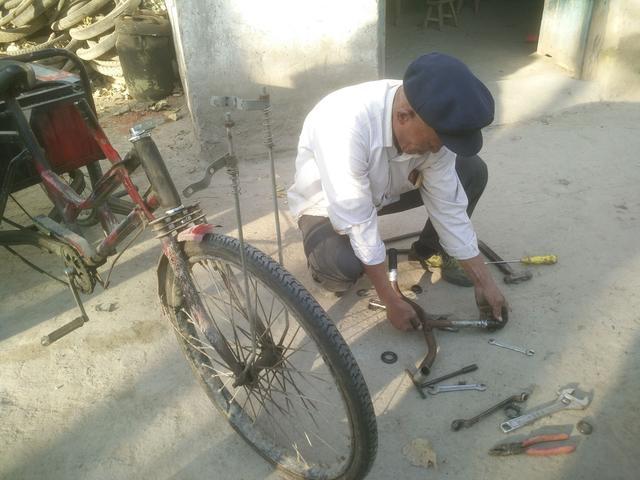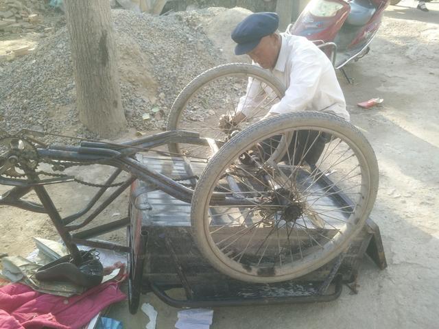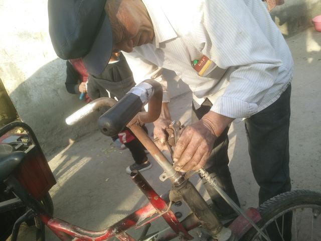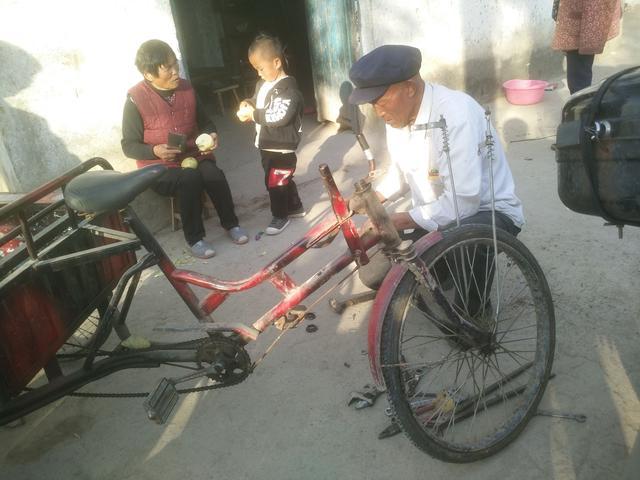 “郝师傅,赶紧的,帮我把三轮车修好,我去赶集买菜,回来推。”2017年11月10日,一位农村大妈风风火火把一辆骑坏的脚蹬三轮车推到郝师傅面前,撂下一句话,走了。这样的事情郝师傅经常遇见,顾客走了,郝师傅拿来工具开始忙活起来。