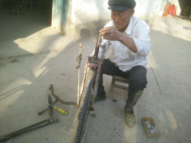 郝师傅淡泊名利,尊重友情,他平凡的人生一天天走过,每一天过得都很充实。郝师傅像天底下千千万万的父亲一样,为了儿女们的幸福,自己苦点、累点,值了。郝师傅的自行车修理铺就是一个交流感情的平台,偶而有村民或顾客来修理自行车,他们就畅谈一番,开心快乐。在这里,小编也祝郝师傅平安、健康;家庭幸福、美满。摄影记录|程声响 (如果你身边有感人故事, 敬请点击关注,然后留言。欢迎转载、交流)