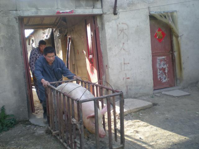 忙中出错,忙中出乱。一不小心,程师傅的肥猪从养猪场逃跑了一头。程师傅和帮忙的邻居一路追赶,费了好大劲才把猪抓住,装进铁笼子,又用电动三轮车拉回养猪场。