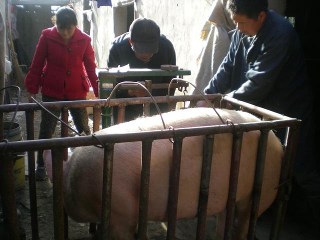 “这头老母猪是我去年花了6000元买来的。”程师傅说。