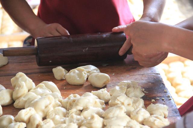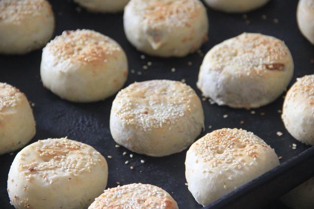 这些面团是用香油和成的,擀成皮用来包月饼原料,再放入烤箱里蒸熟。