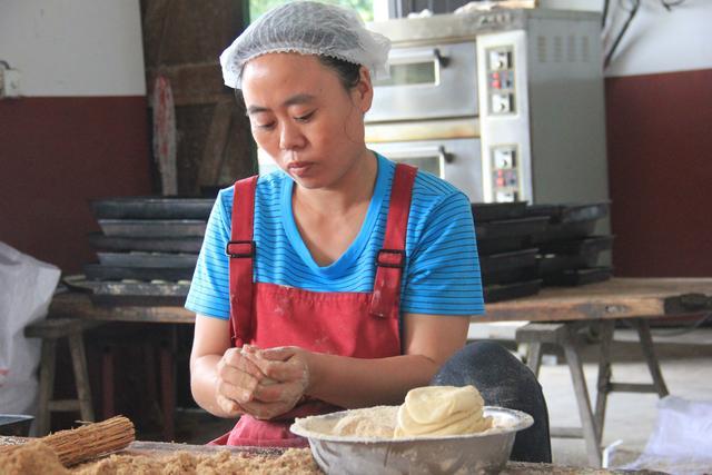 一位美女正手工制作月饼,她告诉小编,传统手工制作的月饼,香甜、酥脆,口感好。