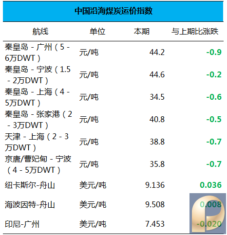 四、中国沿海煤炭运价指数: