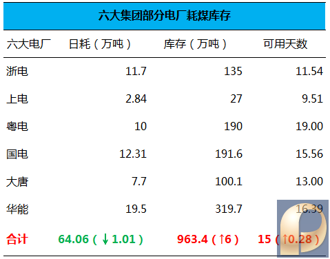 三、六大集团部分电厂日耗、库存、可用天数: