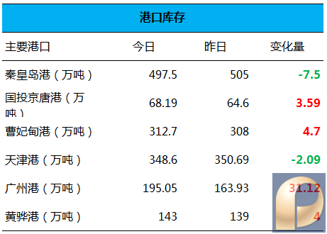 一、全国主要港口煤炭库存量: