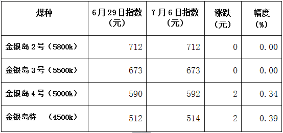 附表1:金银岛煤炭网价格指数(JYD BI)周数据对比表