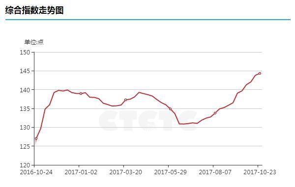10月23日,2017年第40期中国太原煤炭综合交易价格指数发布,迎来十四连涨。本期综合指数为144.33点,环比上涨0.35%。其中:动力煤指数129.48点,环比上涨0.23%;炼焦用精煤指数169.95点,环比上涨0.22%;喷吹用精煤指数164.36点,环比上涨1.53%;化工用原料煤指数121.69点,环比持平。