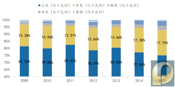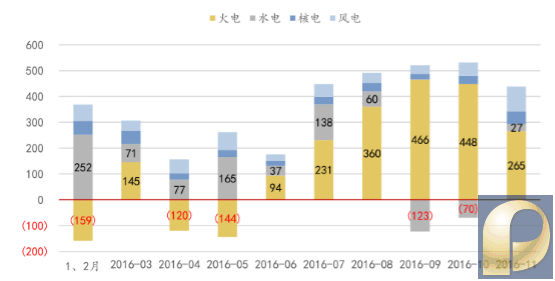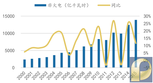 铁路煤炭运输大部分是动力煤,与火力发电为直接上下游关系,运量与火电量长期以来呈现高度正相关性。 火力发电量和铁路煤炭运量呈现显著正相关性 数据来源:公开资料整理 一、短期来看火电增长放缓,占比正持续下降 对于全国煤炭运输至关重要的火电,在12年之后增长却逐步趋于停滞,直接影响了全国动力煤的运量增速。这一变化,虽然也有国内经济增速下滑的影响,但最主要的原因还是政策转向非化石能源发电。2011年发布的《电力行业十二五规划》提出“积极推进水电、核电、风电、太阳能等非化石能源开发,提高非化石能源比重,并将水电和核电作为重点”。 2010年以来全国发电量维持高位,但增速持续下滑,由2008金融危机前的15%以上下降至14年来的5%以下。但在整体增速放缓的大背景下,非火电和火电发电量展现出了不同的增长特征: 发电量增速放缓 数据来源:公开资料整理 非火电增速有明显周期,但整体增长较快 数据来源:公开资料整理 1、非火电发电量的增速有着明显的周期性,大小年相间,大年时可达到25%,小年会低于0%,这主要是受我国降水的周期性带来的影响。但非火电部分整体保持了较快增速,贡献了12年之后主要的电力增量。 2、火电发电量增速下滑, 2013年-15年火力发电量基本没有增长。 火电12 年之后增速显著放缓 数据来源:公开资料整理 发电量占比方面,2011年以来火力发电占总发电量的比例持续降低,但由于基数较大,现在仍然占总发电量的75%左右,其次是水电的18%。由于其他发电方式占比较小,15年只占总发电量的7%左右,认为至少在中短期,对火力发电量影响最显著的还是水电。 火电占发电总量比例持续降低 数据来源:公开资料整理 二、长期来看,水电周期波动较大导致火电主导地位难以替代 火力和水力为最主要的发电方式,两者之和常年占总发电量的90%以上。水电和火电的发电量增速呈现出明显的负相关关系。 这是由于水电虽然前期投入巨大,但后续的发电成本显著低于火电,同时也满足国家对于清洁能源的要求,从而始终能够优先进入电网。火电由于政策的限制,则处于较低的入网优先级,被用于补足水力(也包括其他清洁能源)发电量与社会用电量之间的差额。 火电与水电发电量替代现象明显替代现象明 数据来源:公开资料整理 火电与水电发电增速替代现象明显 数据来源:公开资料整理 但可以看到,水电(包括风电也是类似的)虽好,却有一个非常明显的问题,就是看天吃饭。水电(与风电)高度依赖于气象条件,不可控因素与季节性因素的影响很大。11年以后,水力发电量增速呈现大幅波动。若水电和风电作为发电的主体容易导致电力供应的不稳定。 水电发电量取决于气象条件 数据来源:公开资料整理 对于一个国家的电网来说,拥有稳定的电力供应是最基本的要求,现在来看发电量可控性较强的就是火电与核电。而核电又受到各类条件的限制发展较为缓慢,这使得火电即使在缺乏政策的支持的情况下,也将长期作为我国电网的主力品种。 三、16 年就出现了典型的水退火起 2016年的火力发电量分为明显的两段:上半年同比下降而下半年则明回升。这是由两项主因叠加造成的,除了下半年宏观经济整体好转外,一个很主要的原因就是下半年水电乏力。 火电发电量同比于下半年快速上扬 数据来源:公开资料整理 水电16 年同比前增后减 数据来源:公开资料整理 全社会用电量下半年增速上升 数据来源:公开资料整理 2016年社会用电总量持续增长的情况下,发电增量的主体还是火电和水电。其中上半年水电是贡献增量的主力,火电同比下降,但到了下半年,电力需求大增,水电却由于季节性与气候周期原因增长乏力,最后还是需要火电来扛大梁。 2016 年下半年发电增量基本靠火电(单位:亿千瓦时) 数据来源:公开资料整理 这就可以看出,较高的火电占比对于稳定全国电网的电力供应起着相当重要的作用。至少在核电能挑起发电大梁之前,火电占比继续大幅下降的可能性并不高。这也保证了动力煤的需求即使不再增长,也会在可见的未来维持一个较高的基数。 |