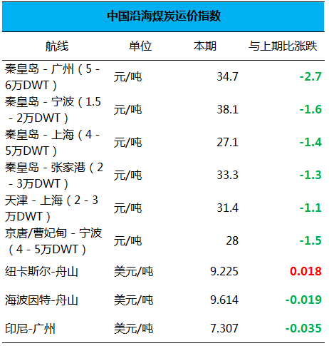 四、中国沿海煤炭运价指数: