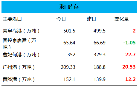 一、全国主要港口煤炭库存量: