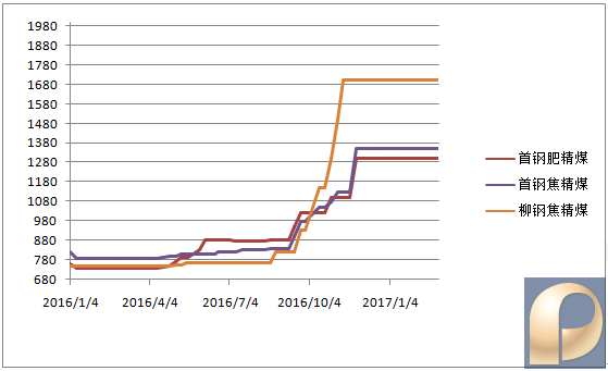 二、 下游情况 1.钢厂采购价: 表2:2017.3.17代表性钢厂炼焦煤到厂价