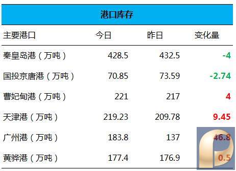 一、全国主要港口煤炭库存量: