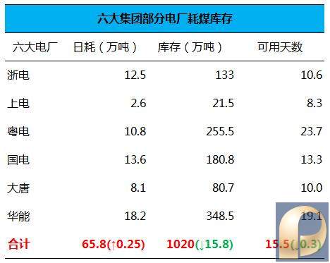 三、六大集团部分电厂日耗、库存、可用天数: