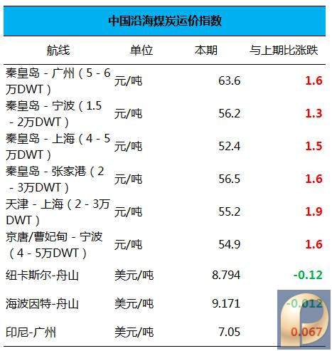 四、中国沿海煤炭运价指数: