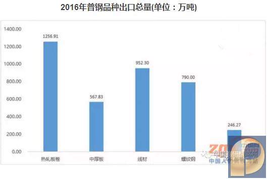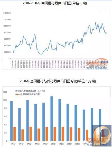 海关总署数据显示,2016年中国累计出口钢材10843万吨,同比下降3.5%,经过连续六年快速增长之后,2016年中国钢材出口量首次出现下滑。