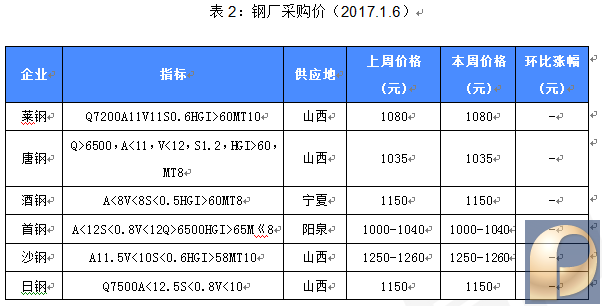 山西地区:目前山西喷吹煤稳中有降。大矿普遍库存不高,继续挺价心态,上月长治阳泉等地地方矿均有30-80的降幅,部分洗煤厂降幅更大,目前各喷吹煤煤企和洗煤厂承压较大,本周虽暂时保持平稳,但部分矿已经与钢厂商讨降价事宜,预计年前部分煤矿或仍有降幅。 河南地区:河南1月4日,登封市徐庄镇屈沟村兴峪煤矿发生煤与瓦斯突出事故。截至5日上午7点,事故共造成7人被困,5人死亡。河南地区大矿价格保持平稳,年底保安全生产,产量有限,目前煤价高位平稳运行。地销价下降之后,目前销售一般,河南永城无烟喷吹煤车板含税价1070元/吨,焦作无烟喷吹煤车板含税价980元/吨。 河北地区:本周河北地区喷吹煤主流矿邯矿集团1日喷吹煤降60元/吨,执行承兑价980元/吨。当前煤企正常生产,矿上有一定库存,而下游用户随着存煤量的高企,采购积极性减弱,从上月起煤矿开始承压,本次降价后预计短期内不会再有降幅。 三、消费地情况