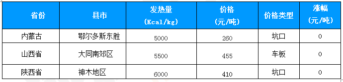 内蒙古地区动力煤价格稳中震荡,成交一般。包头地区5000大卡动力煤车板价报410元/吨,较上周稳;鄂尔多斯地区5500大卡动力煤坑口价报390元/吨,较上周稳;东胜区4500大卡动力煤坑口价报190元/吨,较上周稳; 准格尔旗5000大卡动力煤坑口价报290元/吨,较上周稳。当地某煤矿表示,受环渤海地区动力煤价格下降和环保因素的影响,产地煤炭销售降温,库存逐渐增加,出现滞销情况,许多煤矿纷纷减产,不敢积压库存。