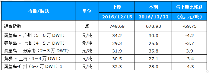 表3:中国沿海煤炭运价指数