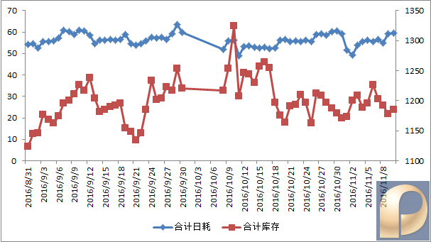 截止昨日,沿海六大电厂合计日均耗煤量59.5万吨,较上周增长5.7万吨,而日均库存1185.5万吨,较上周下降23.3万吨,可用天数19.9天。随着天气转冷,北方供热全面开始,煤炭需求进入新一轮消费高峰,电厂采购补库积极性升高,或将支撑动力煤价格继续上扬。此外,铁路运力的提升也将增加港口现货供应量。因此,在排除极端天气影响外,北方港口煤市或将继续呈现繁荣态势。 |