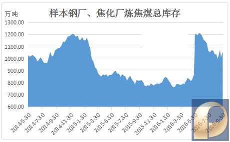 据被监测钢厂和焦企的焦煤库存数据显示:截止9月29日,全国50家样本钢厂焦化及100家独立焦化企业炼焦煤库存总量为1059.72万吨,环比增4.68%。 (注:被监测对象为全国七大区域50家典型钢厂和100家独立焦化厂,50家本钢厂中有37家钢厂自带焦化企业,钢厂以大中型规模为主,独立焦化厂以当地代表焦化企业为主。100家样本焦企总产能为17236万吨,其中东北378万吨,华北7688万吨,华东4305万吨,华中1090万吨,西北2500万吨,西南1275万吨。) 其中,样本钢厂炼焦煤库存总量为476.58万吨,周环上升3.31%。 样本焦化厂炼焦煤库存为583.14万吨,环比上升5.83%。 平均库存及可用天数 钢厂炼焦煤库存: 本期样本钢厂焦煤库存小幅增加,主要原因是国庆期间大矿普遍放假3-5天,部分地方矿依然照常生产,由于临近节前,所以钢厂有所补库现象。虽然9月底发改委称释放部分先进矿的产能,但短期来看,焦煤供应增量十分有限,焦煤市场资源紧缺暂时不会改变,10月份焦煤市场依然偏强。