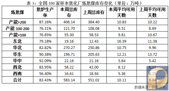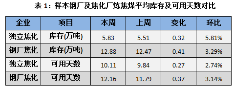 100家独立焦化厂炼焦煤库存: 本期独立焦企焦煤库存继续上升,从焦企补给焦煤库存情况来看,目前焦煤资源依旧偏紧,焦企补库压力较大。