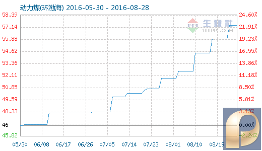 8月27日动力煤(环渤海)商品指数为57.35,与昨日持平,较周期内最高点103.01点(2011-11-15)下降了44.33%,较2016年01月20日最低点44.70点上涨了28.30%。(注:周期指2011-09-01至今)