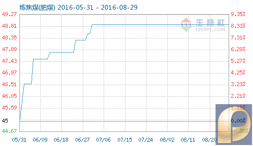 8月27日炼焦煤(肥煤)商品指数为48.89,与昨日持平,较周期内最高点102.38点(2011-11-02)下降了52.25%,较2016年01月28日最低点39.38点上涨了24.15%。(注:周期指2011-09-01至今)