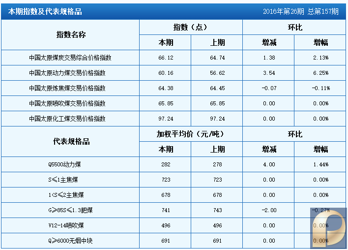 本期中国太原煤炭交易综合价格指数为66.12点,环比上涨1.38点。分指数情况为:动力煤60.16点,环比上涨3.54点;炼焦煤64.38点,环比下跌0.07点;喷吹煤65.85点,环比持平;化工煤97.24点,环比持平。 动力用煤市场: 本期山西大部分主产地区动力煤车板价格均有所上涨。本周沿海主要电企合计日均耗煤量小幅将至58.8万吨左右,略高于去年同期水平,电厂补库需求较好;北方主要港口船舶数量明显增加,煤炭库存量继续回落,并持续处于偏低水平。省内各主产地区动力煤销售情况整体良好,煤炭供应紧张,晋北地区主要煤企上调7月份车板价格25元/吨,地方矿也普遍上调煤价20元/吨以上;长治、阳泉地区主要煤企上调动力煤价格5-10元/吨不等。 本期动力煤部分品种每吨车板含税均价为:大同地区(Q5500,A10-16,V28-32,S1)280元,环比上涨25元;朔州地区(Q4800,V22-28,S1)235元,环比上涨20元;忻州地区(Q5500,A18-23,V31-35,S1)270元,环比上涨25元;阳泉地区(Q5500, V10-13,S1.2)280元,环比上涨10元;晋中地区(Q5800,A11-12,V10-15,S1)280元,环比持平。 炼焦用煤市场: 本期山西灵石肥煤车板价格有所下跌,其余地区价格持稳。本周钢材现货市场成交略显乏力,受市场库存偏低及唐山限产预期影响,贸易商挺价拉涨意愿加强,价格总体震荡趋强运行,不过钢厂在原料采购上仍较为谨慎。省内主要煤企产量及库存均偏低,7月销售价格保持上月水平不变;吕梁地区部分高硫煤存在滞销问题,价格承压;晋中地区近期下游采购量下降明显,市场观望心态加重,部分洗煤厂小幅下调肥煤价格10元/吨。 本期炼焦煤部分品种每吨车板含税均价为:太原古交主焦煤(A≤10,V20-23,S≤1.3,G≥75)800元,临汾霍州肥煤(A≤10,V30-32,S≤1,G≥85)720元,吕梁焦煤(A9,V21,S0.5,G85)690元,长治瘦煤(A<10,V10-15,S0.5,G5-15)495元,均环比持平。晋中灵石肥煤(A10,V30-36,S0.6,G85)630元,环比下跌10元。 喷吹用煤市场: 本期山西各主产地区喷吹煤车板价格均保持稳定。近期钢厂仍以将库存为主,对喷吹煤采购需求不大。省内喷吹煤供应总体偏紧,但市场成交情况一般,价格总体持稳。 本期喷吹煤部分品种每吨车板含税均价为:太原喷吹煤(A10,V13-16,S1.1)530元,晋城无烟喷吹煤(A11,V8-10,S0.5)485元,长治屯留喷吹煤(A9-10,V14-17,S<0.4)477元,长治喷吹煤(A12-13,V14-17,S<0.5)500元,阳泉喷吹煤(A10-11,V8,S1)450元,均环比持平。 化工用煤市场: 本期山西晋城、阳泉地区无烟块煤价格保持稳定。本周尿素行业开工率继续下降,市场行情偏弱运行,局部地区农需稍好、价格坚挺;甲醇市场下游需求基本面未有改观,终端多按需采购,价格窄幅盘整。省内无烟块煤销售依旧不温不火,无烟小块销售情况好于中块,主要受产能收缩支撑,价格继续维稳。 本期化工煤部分品种每吨车板含税均价为:晋城城区无烟中块(A≤14,V7-9,S0.5)705元,高平无烟中块(A<14,V8-12,S<0.5)690元,沁水无烟中块(A≤14,V≤6,S≤0.5)685元,泽州无烟中块(A≤16,V7-9,S0.5)700元,阳泉城区无烟中块(V9-12,S1,Q7000)630元,均环比持平。 |