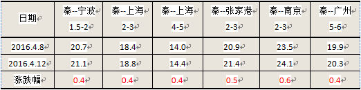 分析认为,目前沿海煤炭运输需求依旧低迷,下游采购规模难以改善,传统用煤淡季导致用电需求再次回落。截止到4月12日,沿海六大电厂平均日耗回落至54.7万吨,与去年同期相比下降6.9万吨,可用天数在20天以上。不过,由于近日北方港口的持续封航,到港船舶拉运周期延长,导致市场可用运力缩减。加之,伴随近期外贸航运市场的反弹行情,大批内外贸兼营货船转战外贸航线,运输市场供需矛盾略有缓和,船东借此机会调高报价,本期海运煤炭运价试探性上涨,未来市场行情走势仍有待观察。