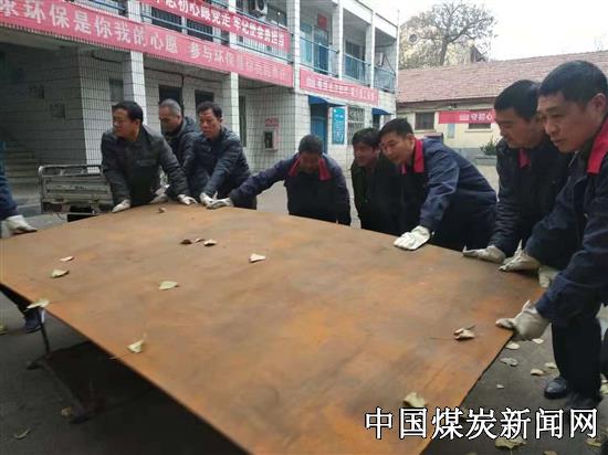 【本网讯】近日,河南能源鹤煤公司八矿机运队正在完成该矿南煤北运安装3105夹带给煤机的任务。制作挡煤板和给煤机平台所需要的几张中厚钢板和花纹板体积大、重量沉,运输问题可难坏了负责加工任务的工人。11月27日上午,该队党支部的党员知道后,下班后相约来到库房,支部书记李涛带着大家一起把钢板搬到板车上,一趟趟送到加工地点。当天天气特别寒冷,但大家热情高涨,以劳动为荣,分工合作,干劲十足,展现了该队党支部党员的先进性,发挥了党员的先锋模范作用,在全队营造了一个好的氛围,形成了一个好的风气。图为党员们正在运送钢板。