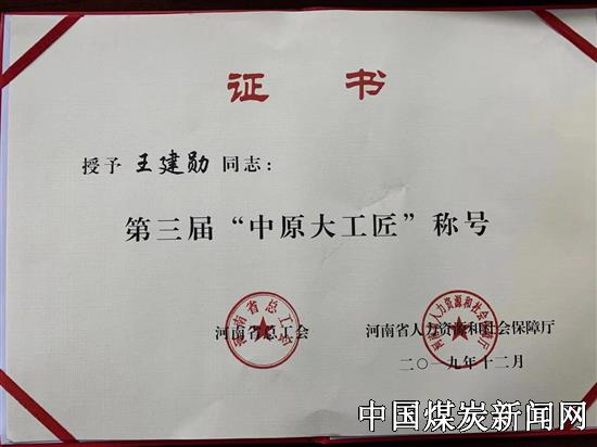 据悉,12月30日在郑州召开的第三届中原大工匠暨2019年劳模工匠创新工作室选树命名会议,共评出30名“中原大工匠”和50个河南省示范性劳模和工匠人才创新工作室,其中省管企业4名"中原大工匠"、5个创新工作室受到表彰,而王建勋本人和他的创新工作室是唯一一个同时受到表彰。