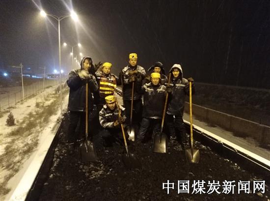 此时,天空洋洋洒洒下起了雪,矿方装车完已经是晚上七点多了,夜间陕北温度低至零下十七八度。而最难的一项工作就是人工平煤,由于袁大滩煤矿没有平煤设备,初期装车质量不高,装车情况非常不理想,加之该部人员少、任务重、工作量大,陕北地区国铁货运对平煤要求又非常严格。袁大滩项目部干部职工加起来一共15人,一人负责检车和过衡,两人负责喷洒防冻液和抑尘液,其余12人全部参与平煤,48辆车每人平均六到七节车的平煤任务。
