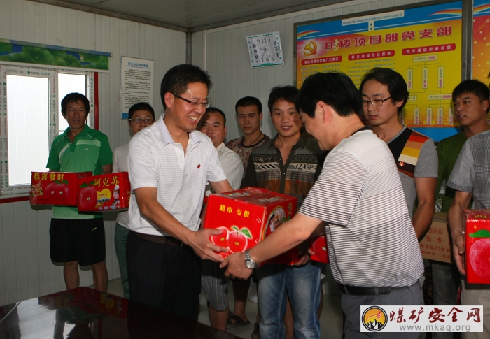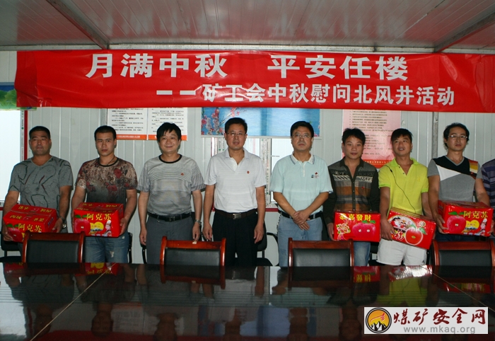 在中秋佳节来临之际,任楼矿党委副书记、纪委书记王建中带领矿工会一行走进北风井,开展“月满中秋平安任楼”中秋慰问活动,为在北风井工作的职工们送去节日的温暖和问候,并为他们送去了苹果和月饼,祝愿他们过一个欢乐祥和的节日。