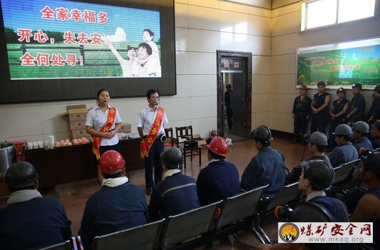 9月18日,唐口煤业公司安全协管会委组织安全协管员到井口分三班为职工们送去象征平安、团圆的苹果和月饼。“一个苹果一颗心,一个月饼一片情”他们用自己的浓浓真情向矿工师傅们表达了自己对亲人的节日祝福和安全叮嘱。安全协管员张晓梅和满建强还以夫妻对话形式进行安全演讲,整个过程伴随着伤感的音乐和一幅幅悲惨的事故现场画面,让职工看到了安全事故背后的沉痛教训,也给他们敲响了过节勿忘安全的警钟。据统计,此次活动共送月饼2600个、苹果600余斤、红豆汤6桶。