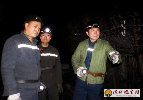 在11131采面,周向志董事长一边走一边看,不时仔细询问陪同的肖阳矿长和采二队队长戴蕤有关生产组织、人员到位及工作面的安全措施等情况,详细了解采掘员工的吃住条件、工资收入、家庭子女情况、对节日期间矿上的安排是否满意等。当听到戴蕤队长对各方面都很满意时,周董事长非常高兴,嘱咐大家一定要注意安全生产。