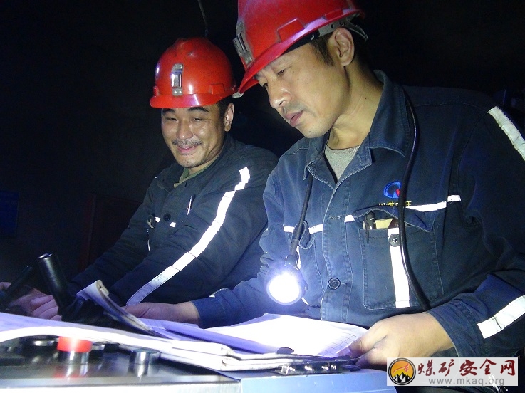 步行10分钟左右,张泽坤在118-22回风巷入口处,对掘进一队的交接班记录、班前会议记录、现场作业人员信息公示牌的填写情况进行了检查。来到碛头,他仔细查看着现场的每一根支柱、每一块顶板。“顶板上没打锚索的及时补打,打了锚索的要及时张紧。”“作业人员搞临时支护时,不要空顶作业。”“要用掌板把锚网夹住了再打临时支柱。”……张泽坤边查看边嘱咐当班队干、班组长陈沿桔、罗有干,并当场落实人员对发现的隐患、问题进行整改处理,直到四根临时支柱完全撑好后才离开碛头。